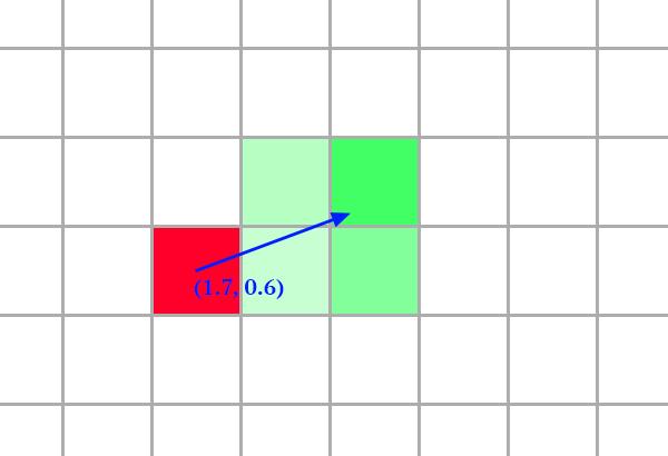 Another possibility is to add displacement. Displacement is a way to move individual pixels of a texture to a different position on another texture. A 2D vector field can be used to tell where should the pixels of a texture be picked from another texture. When using GLSL and working with textures, it is not mandatory to use discrete coordinates, for instance it is possible that the output pixel of a texture gets its value grabbed and interpolated from 4 different pixels of an input, if the displacement vector of such pixel isn’t an integer (assuming we are in pixel coordinates).