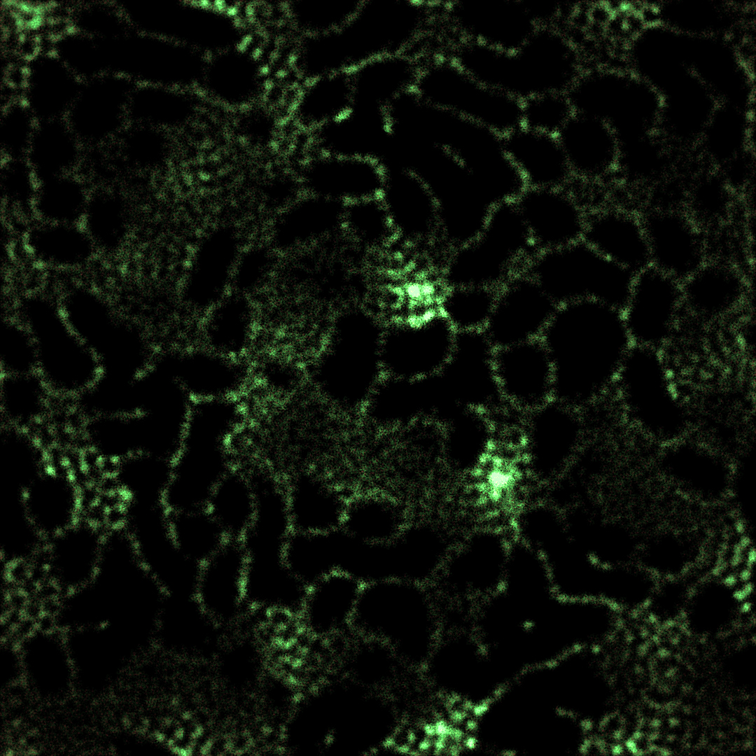 Let’s look at the Physarum simulation from another angle. The simulation is an attempt at simulating a transport network. Despite the particles being a core element of the simulation, we are mostly interested in the substrate that is being produced. The particles can be seen as a mean to construct the transport network, not the transport network itself. Let’s take the particles out of the simulation, and only look at the substrate: